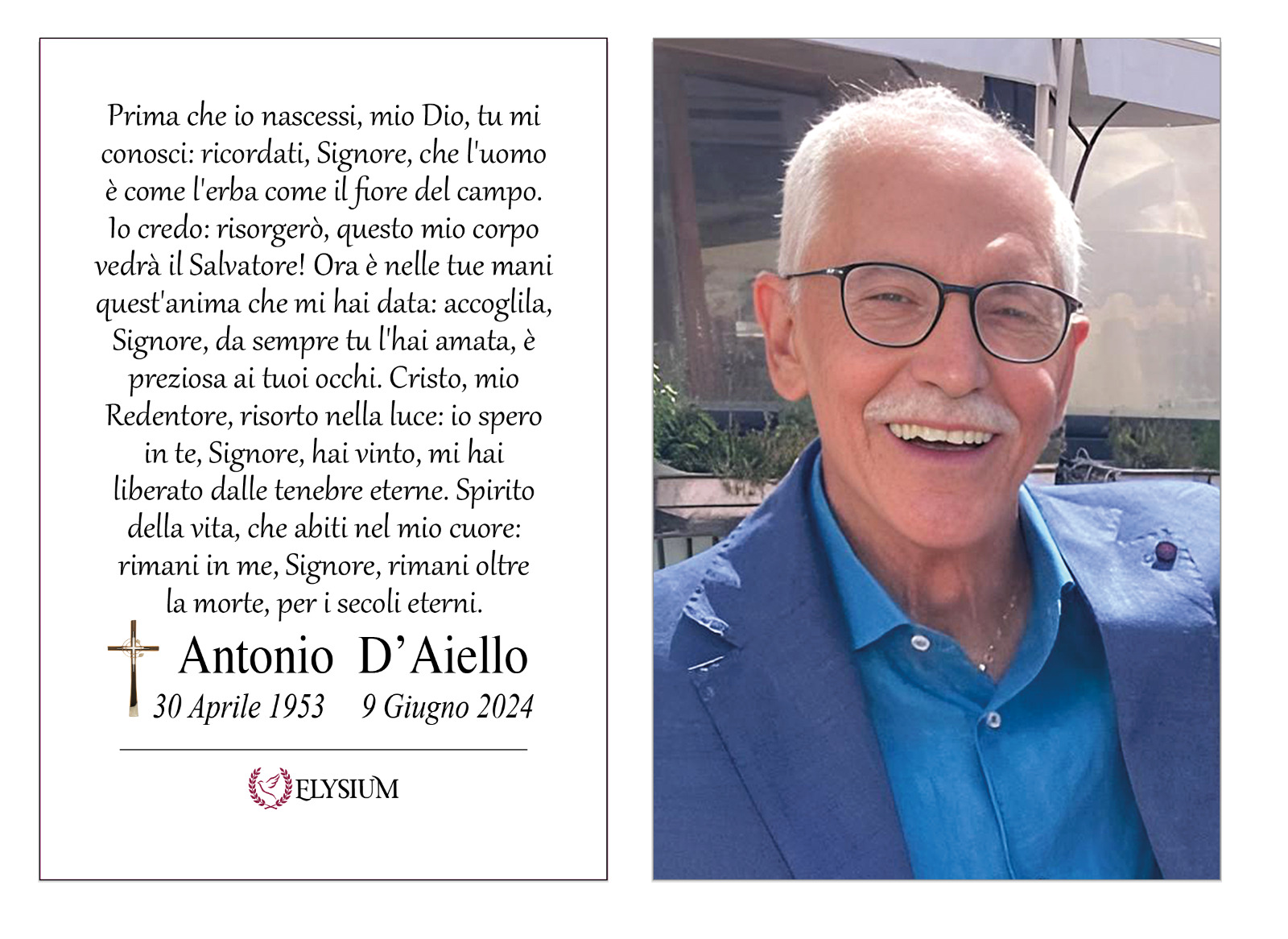 A un mese dalla scomparsa, la moglie Angela, i figli Mattia, Giuliana con Antonio e il tanto amato nipotino Filippo, i cognati, i nipoti e i familiari tutti lo ricordano affettuosamente in una Santa Messa.